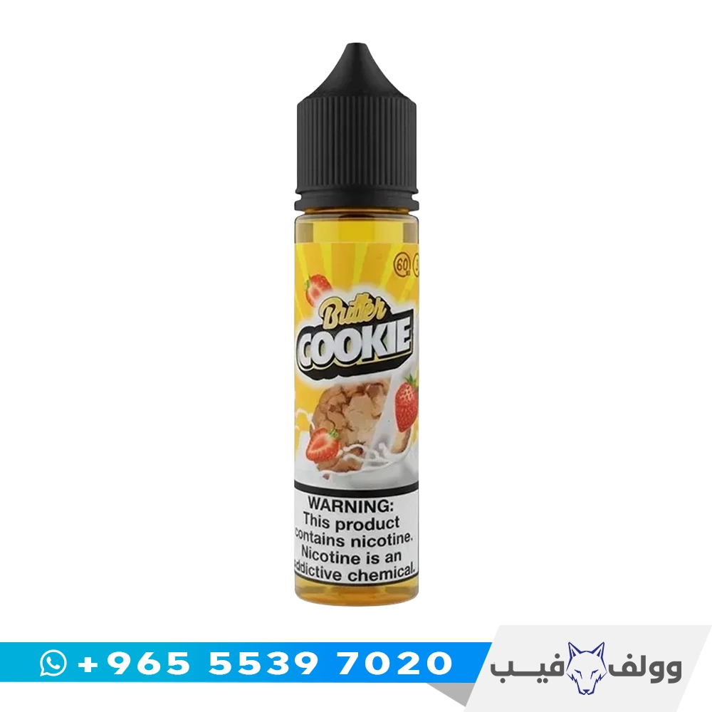 ميكس “بتر كوكيز” بالزبدة مع الفراولة الحالية. نكهة فري بيس (Freebase) بحجم 60 مل، لعشاق الحلا والمخبوزات.