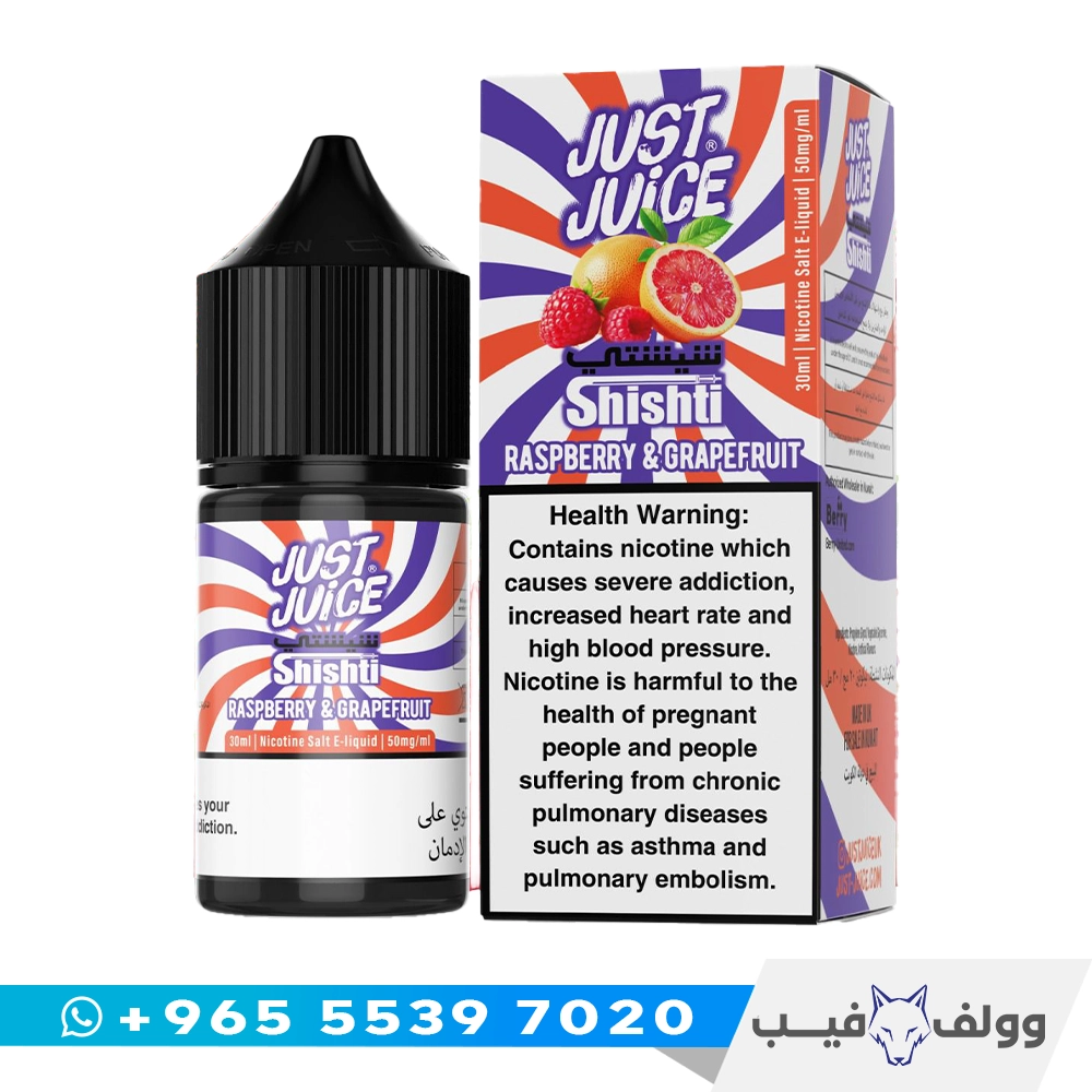 نكهة جست جوس شيشتي رازبيري وجريب فروت مزيج توت حلو مع جريب فروت حمضي منعش، توازن مثالي بين الحلاوة والحموضة، متوفرة بتركيزي 20mg و50mg مناسبة لأجهزة البود وسحبة MTL سلسة.
